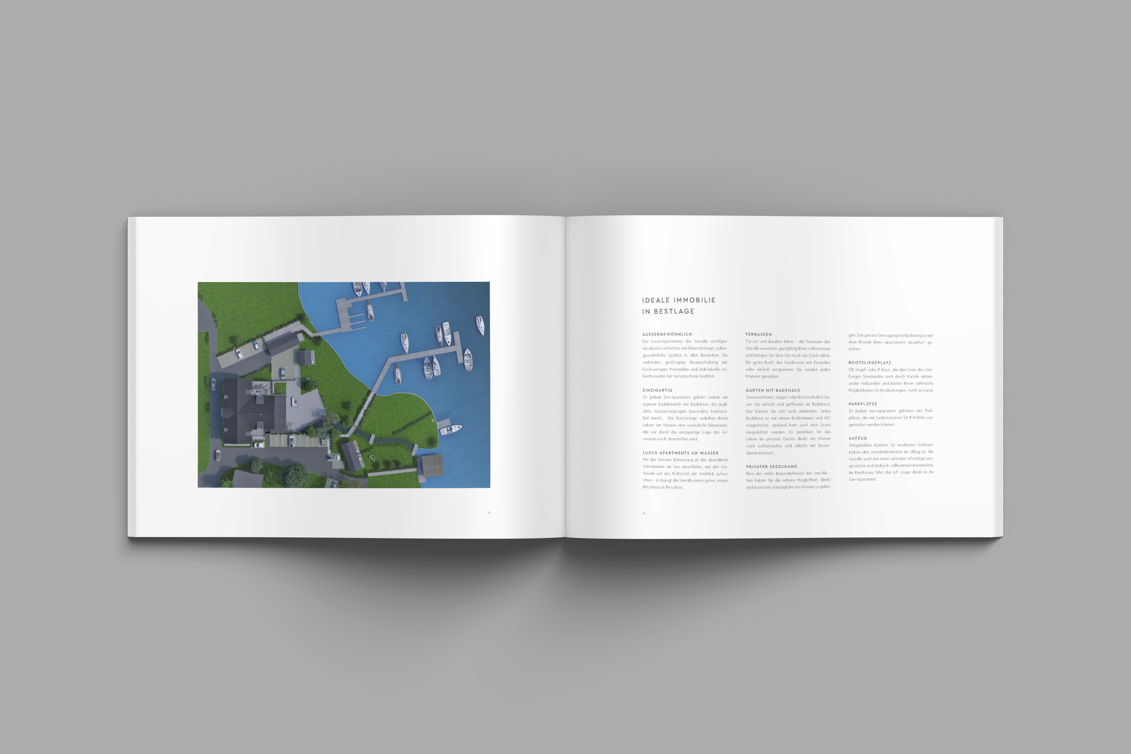 Exklusive Immobilien in bester Lage: Großzügige Etagenwohnungen mit privatem Grundstück, direktem Seezugang, eigenem Badesteg, stilvollem Badehaus und Bootsliegeplatz. Ein außergewöhnliches Angebot für das Leben am Wasser. BUERO.R gestaltete für das prestigeträchtige Bauprojekt in der Seestraße in Obertrum den Vermarktungskatalog, um den einzigartigen Charakter und die Lage der Immobilien in einem ansprechenden Design zu präsentieren.