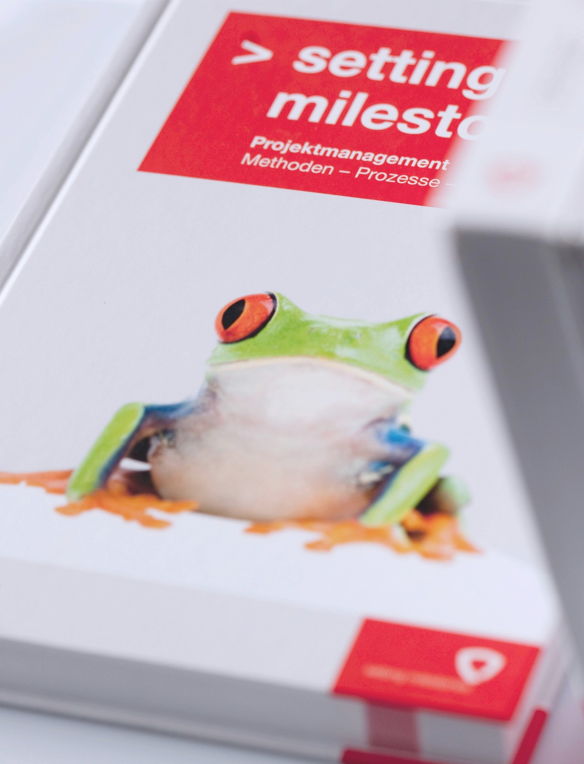 Die Bücher „Setting Milestones", "Social Competence“ und „pm Kiss“ dienen als Leitfäden für das Management von Kleinprojekten, Projekten und Programmen und richten sich an alle, die Projekte leiten oder daran mitarbeiten. BUERO.R entwickelte das Editorial Design und begleitete die Umsetzung sowie die Print-Produktion.