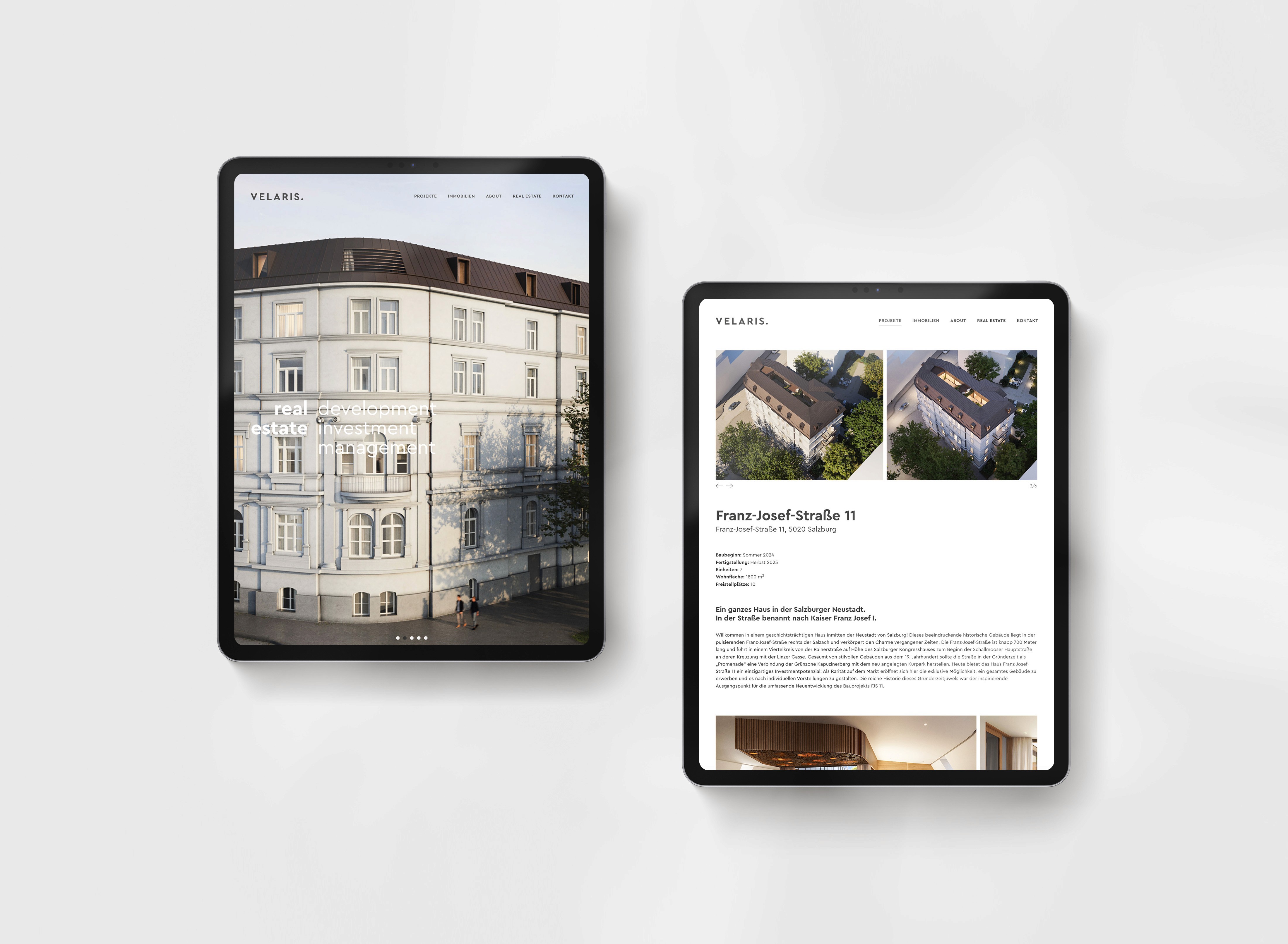 Die Velaris Gruppe mit Sitz in Salzburg ist auf die Entwicklung von Wohn- und Gewerbeimmobilien in der Stadt und im Land Salzburg sowie in Oberösterreich spezialisiert. BUERO.R begleitete den Positionierungsprozess und war für die Gestaltung des Brand Designs, die Entwicklung des zentralen Webauftritts sowie die Erstellung von Vermarktungskatalogen für die Immobilien verantwortlich.